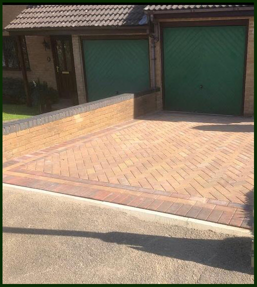 (Brindle block pavers with a brindle block pave border and edgings and a kerb edged entrance)